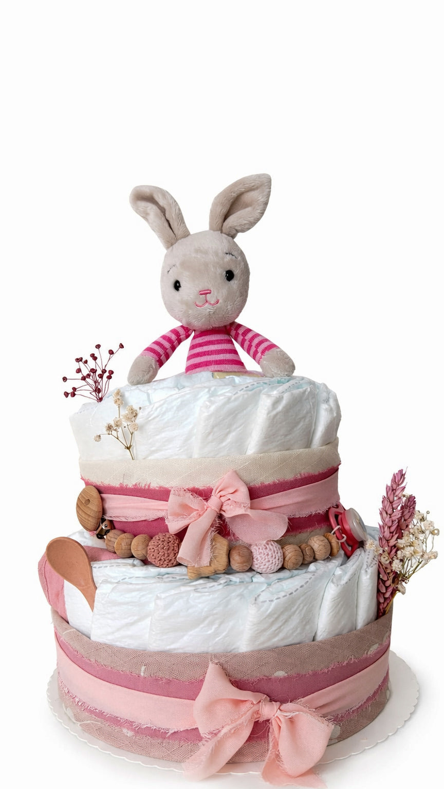 💖 Windeltorten für Mädchen – liebevoll, zart und detailreich.